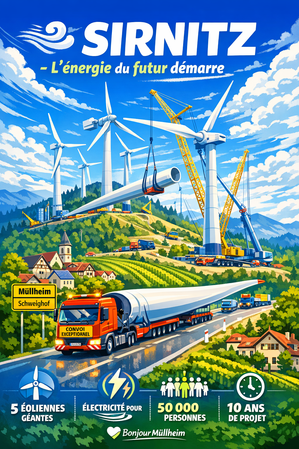 Les travaux de montage des cinq éoliennes à Sirnitz débuteront lundi. Dès le passage à la nouvelle année, le parc éolien devrait fournir de l’électricité pour environ 50 000 personnes. Depuis des années, voire des décennies, l’énergie éolienne sur les hauteurs de la Forêt-Noire dans le Markgräflerland central fait l’objet de discussions — mais jusqu’à aujourd’hui, aucune éolienne n’y tourne encore. Cela devrait changer au cours de l’année : comme l’a indiqué vendredi le service de presse de Badenova, les travaux de fondation des cinq éoliennes doivent commencer lundi. On entre ainsi dans la « phase centrale de construction » du parc éolien Sirnitz/Dreispitz, selon Badenova. « Au cours des derniers mois, les conditions préalables à la construction ont été mises en place : les tracés de câbles sont en grande partie posés, et les routes pour le transport des composants de grande taille ont été préparées », indique le communiqué. À partir de la mi-mars, le fabricant des éoliennes, la société Enercon basée à Aurich en Frise orientale, prendra en charge le chantier. La livraison des composants de grande taille, notamment pour les tours et les pales de rotor, s’étalera sur l’été et concernera directement plusieurs localités de la région. Les pales seront acheminées via Müllheim et Schweighof jusqu’à la Sirnitz, tandis que d’autres éléments devront être transportés par un détour via la vallée de la Wiese pour des raisons techniques. « Les cinq installations du type Enercon E-175 atteignent chacune une hauteur totale de 249,50 mètres et développent ensemble une puissance de 35 mégawatts. La production attendue est d’environ 71,5 millions de kilowattheures par an — soit plus que les neuf éoliennes existantes du district de Breisgau-Hochschwarzwald réunies », indique le service de presse de Badenova. Cela permettrait d’alimenter, en théorie, environ 50 000 personnes. Les emplacements utilisés concernent des terrains appartenant aux communes de Müllheim, Heitersheim, Sulzburg et Buggingen ainsi qu’à Forst-BW. Le projet possède désormais un historique de plus de dix ans. Parallèlement au débat toujours ouvert concernant le Hochblauen comme site potentiel d’éoliennes, la zone du parc Sirnitz/Dreispitz a été davantage envisagée dès 2015. Le projet a été approuvé en octobre 2024, et les travaux préparatoires de déboisement ont commencé en 2025. Ces opérations ont été au cœur des critiques adressées au projet. L’impact sur l’écosystème forestier serait disproportionné, selon les opposants. Une plainte déposée par le Bürgerforum Badenweiler contre le parc éolien de la Sirnitz a été rejetée fin 2025 par la cour administrative du Land. Badenova considère toutefois que les interventions dans la nature sont « surcompensées » par des mesures compensatoires, telles que la création de nouveaux habitats pour les oiseaux et les chauves-souris. « Nous nous réjouissons de la confiance et en particulier de la persévérance des communes impliquées, qui croient depuis plus de dix ans en la transition énergétique régionale et assument leurs responsabilités. Une part importante de la valeur ajoutée reste dans la région. Grâce aux revenus du parc éolien, les communes renforcent leur marge de manœuvre », déclare Sebastian Schüßler, responsable du développement de projets éoliens chez Badenova Erneuerbare, à l’occasion du lancement des travaux. Michael Klein, directeur général de Badenova Erneuerbare, souligne quant à lui la dimension globale : « Dans le contexte politique actuel, le développement de l’énergie éolienne est plus important que jamais. » Le maire de Müllheim, Martin Löffler, se montre également satisfait : « Du côté des communes, ce sont surtout Müllheim im Markgräflerland et Heitersheim, en tant que principaux propriétaires des terrains, qui ont fait avancer le projet du parc éolien Sirnitz/Dreispitz, car il existait au départ une certaine réticence parmi les communes concernées, qui s’est progressivement dissipée. Nous sommes très heureux que de l’énergie régionale et propre y soit bientôt produite à grande échelle », déclare Löffler, qui se projette déjà sur les prochaines étapes concrètes : « D’ici l’achèvement, nous devrons maintenant traiter des questions pratiques. Quels contrats doivent être conclus ? Comment organiser le transport des énormes pales d’éoliennes en plein cœur de Müllheim ? Et bien d’autres questions de détail encore. » Article original du BZ : https://www.badische-zeitung.de/startschuss-fuer-die-montage-der-windraeder-auf-der-sirnitz