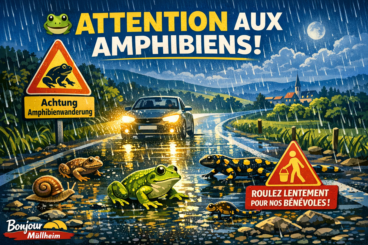 Chaque année, avec le retour des températures plus douces, un phénomène discret mais essentiel se déroule dans les paysages du sud du Bade : la migration des amphibiens. Dans le district de Breisgau-Hochschwarzwald, cette période marque un moment critique pour des espèces déjà fortement fragilisées. Dès que les nuits dépassent les cinq degrés et que les pluies printanières s’installent, grenouilles, crapauds, tritons et salamandres quittent leurs refuges hivernaux. Leur objectif : rejoindre leurs lieux de reproduction ancestraux. Mais entre ces deux mondes, un obstacle majeur s’impose : le réseau routier. Les routes, omniprésentes dans ces territoires semi-ruraux, constituent aujourd’hui l’un des principaux facteurs de mortalité. Au-delà du risque d’écrasement, un élément souvent méconnu accentue encore la menace : l’onde de pression générée par les véhicules rapides, capable d’être fatale même sans contact direct. Le constat écologique est préoccupant. En l’espace d’une décennie, certaines populations d’amphibiens ont diminué de près de 60 %. La destruction des habitats, la fragmentation du territoire et les effets du changement climatique contribuent à ce déclin accéléré. Face à cette situation, un réseau de bénévoles s’engage activement. Chaque nuit, ils installent des dispositifs de protection, collectent les animaux et les aident à franchir les routes en toute sécurité. Leur action, essentielle, souligne l’importance d’une mobilisation collective. Les autorités locales ont ainsi mis en place une signalisation spécifique sur plusieurs axes, notamment autour de Müllheim, Britzingen, Badenweiler ou encore Buggingen. Ces mesures temporaires, valables jusqu’au 30 avril, visent à sensibiliser les automobilistes et à réduire la vitesse dans les zones à risque. Au-delà de la contrainte, cette initiative rappelle une réalité fondamentale : la coexistence entre infrastructures humaines et biodiversité nécessite adaptation et responsabilité. Chaque geste compte, et parfois, lever le pied peut sauver une vie.