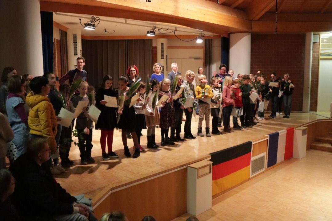 L'équipe enseignante autour de l'équipe de direction Barbara Dobuszewski et Yvonne Spindler ainsi que Mélanie Szymanski de l'école primaire française ont réussi à maîtriser ce proverbial sac de puces et à mettre en place un beau programme. Dommage que la technique ait fait grève et que le public n'ait donc pas pu profiter du clip vidéo dans lequel la mémorable signature du Traité de l'Élysée le 22 janvier 1963 par Charles de Gaulle et Konrad Adenauer était rejouée par deux élèves de l'école primaire.